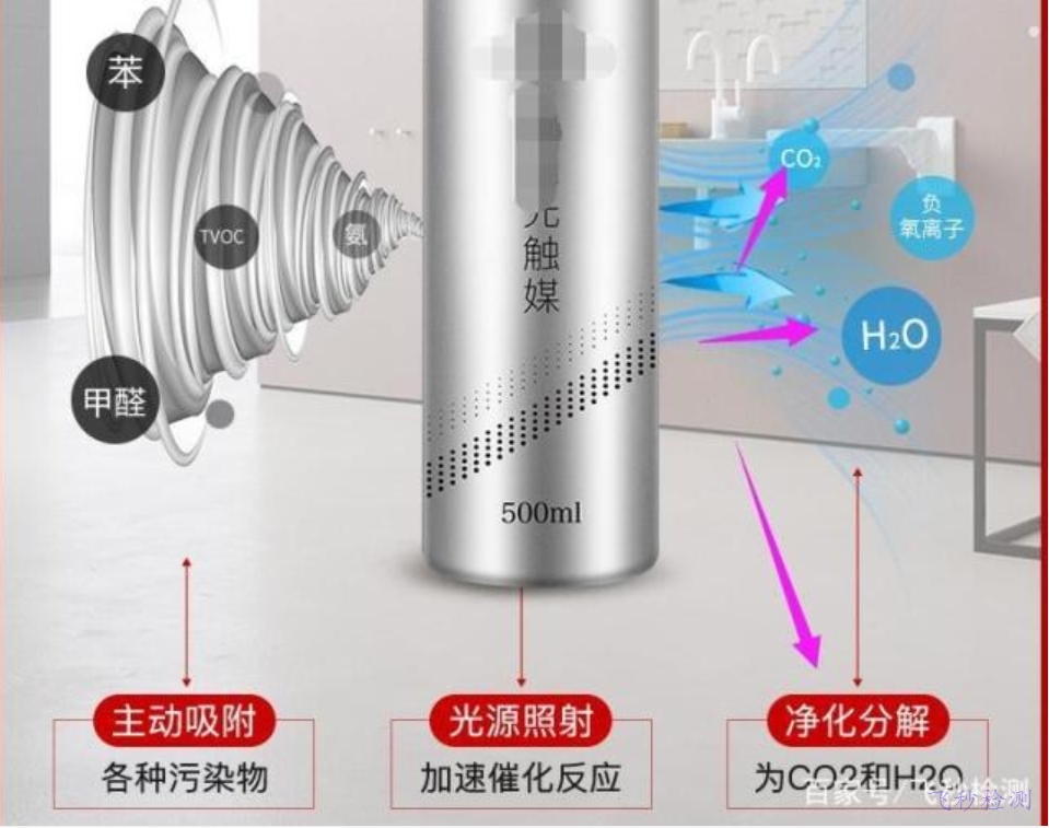 利用自行搭建的甲醛測試裝置對市售銷量高的4 種甲醛去除劑的除醛性能進行了分析檢測。結果表明,液體甲醛去除劑因組分有水而具有較好的除醛效果(83%~92%),無水時去除劑干燥樣品對甲醛的去除效果明顯降低(26%~38%);除醛過程未發現二氧化碳生成,進一步表明了所選的商用去除劑對甲醛的去除主要歸因為成分中的水對甲醛的物理吸收!實驗結果顯示,某寶產品的催化結果涉嫌虛假宣傳!